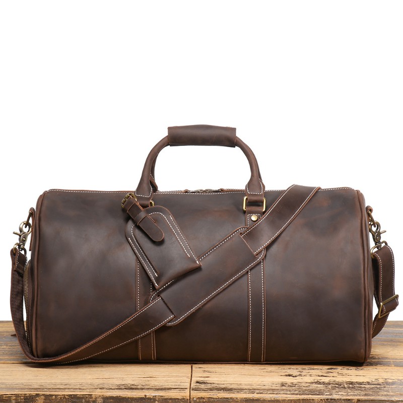 Premium Genuine Leather Travel Duffel Bag with Shoe Compartment – Vintage Brown - 1000
