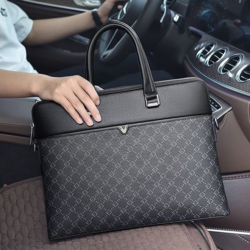 Elegant Pattern: ব্যাগের ওপরের সূক্ষ্ম টেক্সচার এবং ডিজাইনার লোগো একে সাধারণ অফিস ব্যাগ থেকে আলাদা করে তোলে।